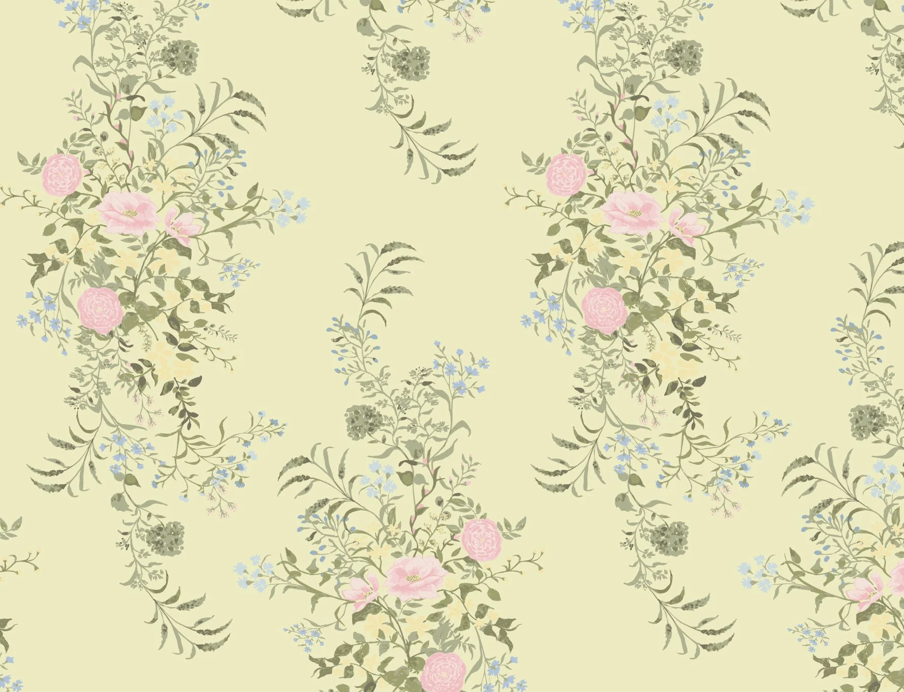 Cottage Blooms celebrates the cheerful abundance of traditional cottage gardens, where flowers grow freely and bees drift between blossoms. The collection features trailing florals, wildflower motifs, and light botanical details inspired by plants commonly found climbing through hedgerows and garden borders.