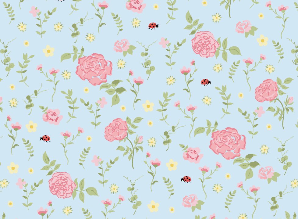 The palette combines soft pinks, fresh greens, warm yellows, and sky blues, creating a fresh and uplifting feel. Together the designs evoke the quiet beauty of summer gardens in full bloom and bring a sense of warmth and timeless charm to fabrics, wallpapers, and home décor.